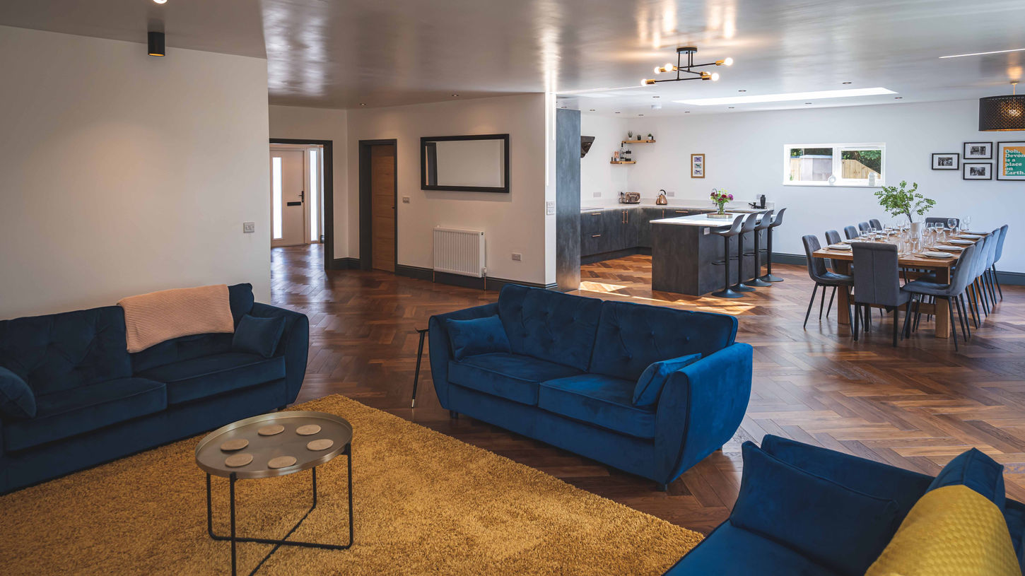 Refurbished by Aurora Property Enterprises, this five-bedroom, four-bathroom Airbnb bungalow in the pretty village of Winkleigh boasts a large open-plan kitchen dining area and enjoys spectacular views over Dartmoor.